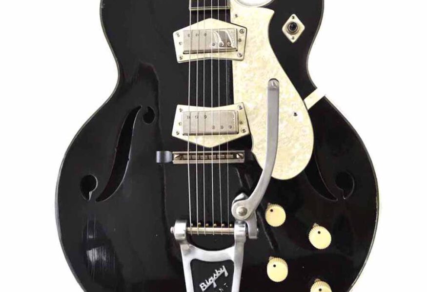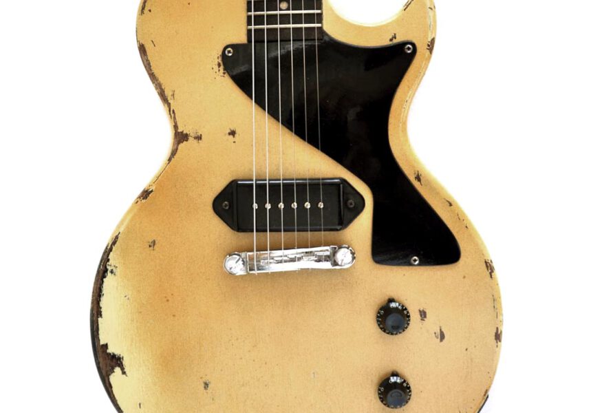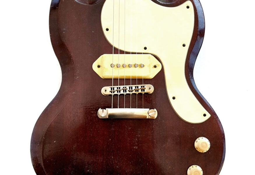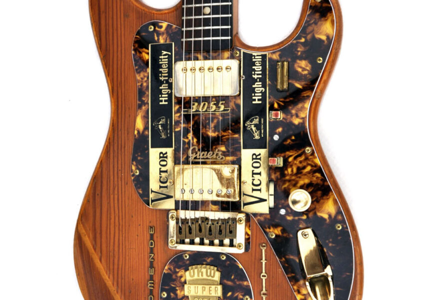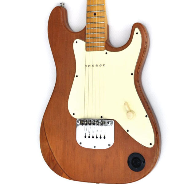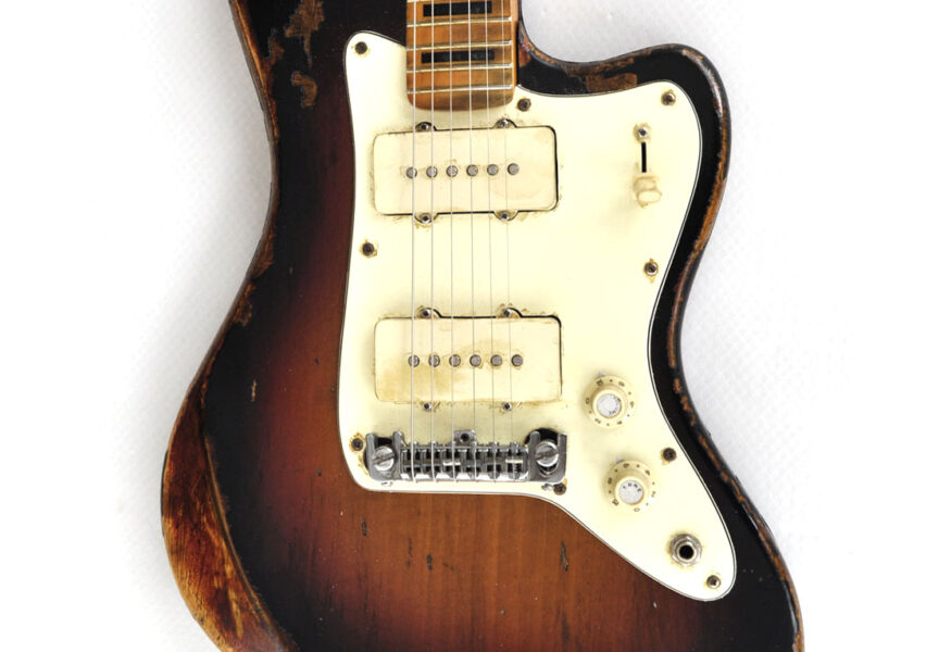 Wieder einmal wurde aus Einzelteilen, die sich über die Jahre ansammelten, ein sehr stimmiges Instrument komponiert, wie ich finde. Es handelt sich im Grunde um eine Jazzmastergitarre in Non-Tremolo Version in Relic-Optik. Zum Einsatz kam ein cooler Ahornhals mit großer Kopfplatte und