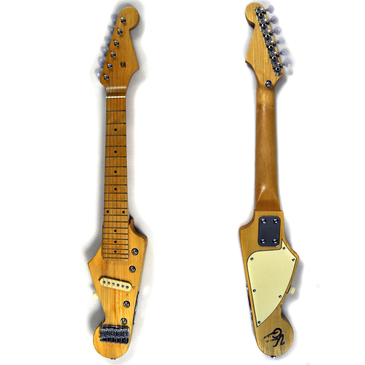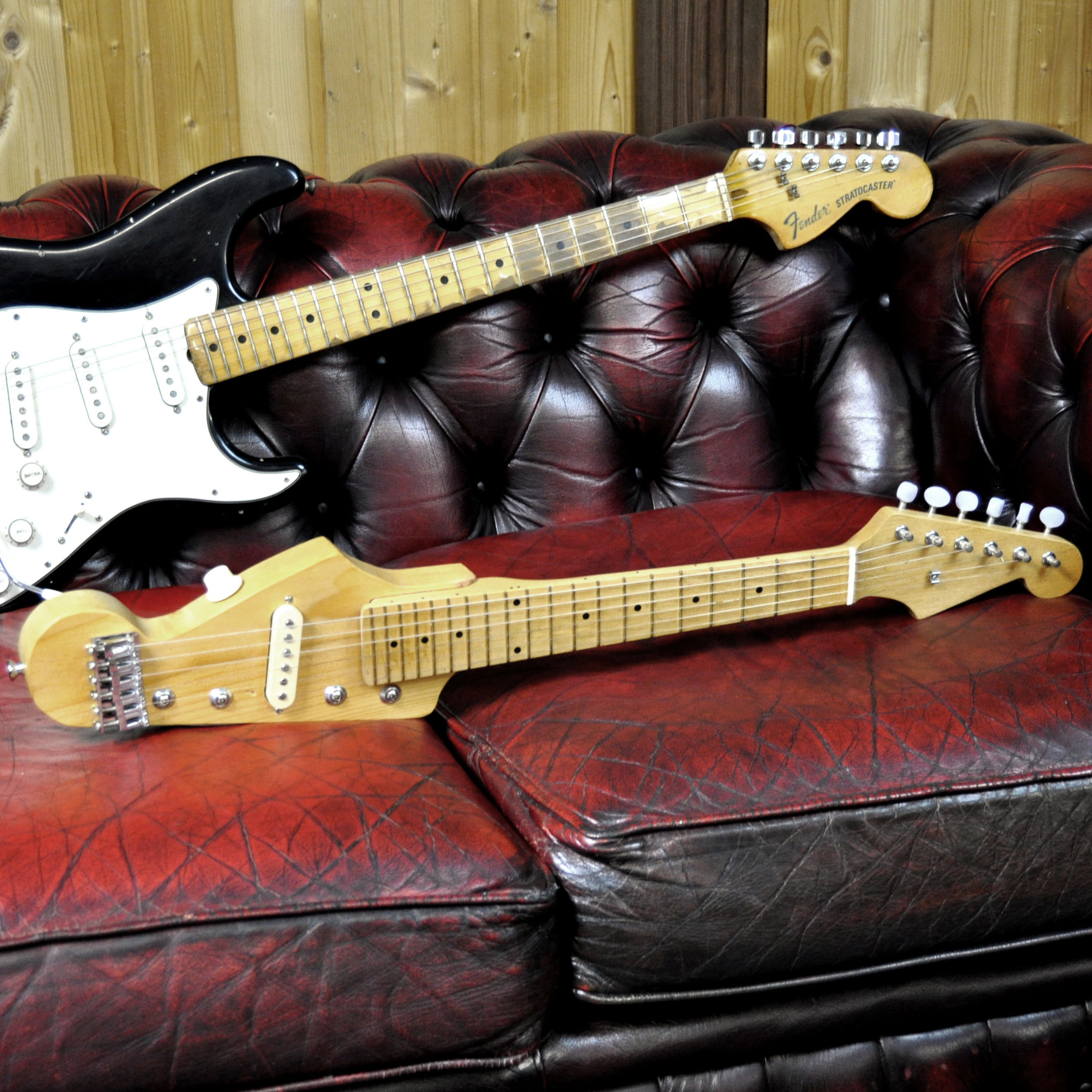 Da die Stratocaster Kopfplattenform als designerisches Meisterwerk gilt (okay, von Paul Bigsby (1899-1968) gab es sie schon vorher…), war es jetzt aller höchste Zeit, wie ich finde, diese auch mal auf einen Korpus zu übertragen. Das Ergebnis kann sich ja wohl sehen lassen!