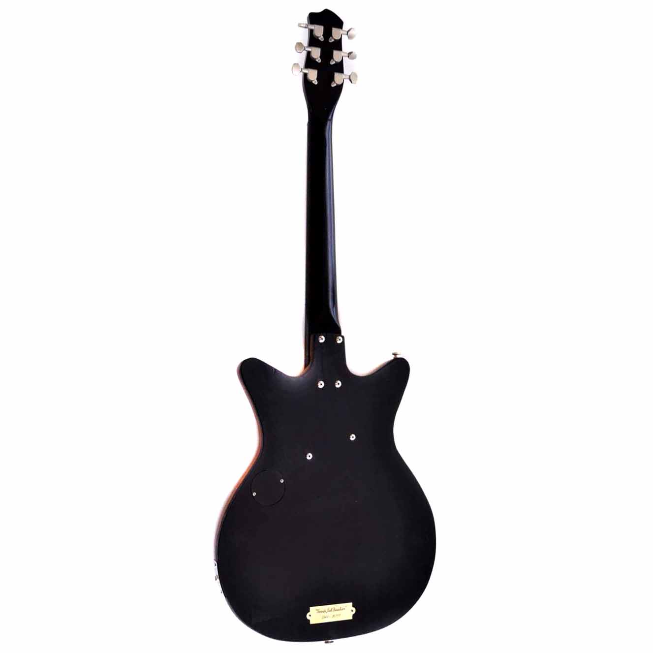 Das geschulte Auge sieht sofort, dass es sich hier um die Form einer Danelectro Doublecut handelt. Um die gefrästen Schriftzüge auf dem Fassdeckel möglichst gut zur Geltung zu bringen, hab ich mich für eine puristische Ein-Pickup-Version mit nur einem Mastervolumenregler entschieden. A