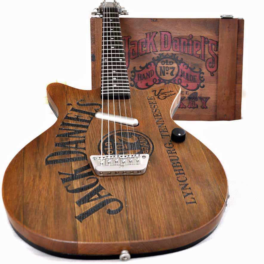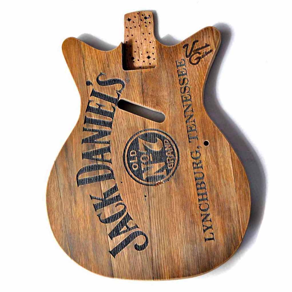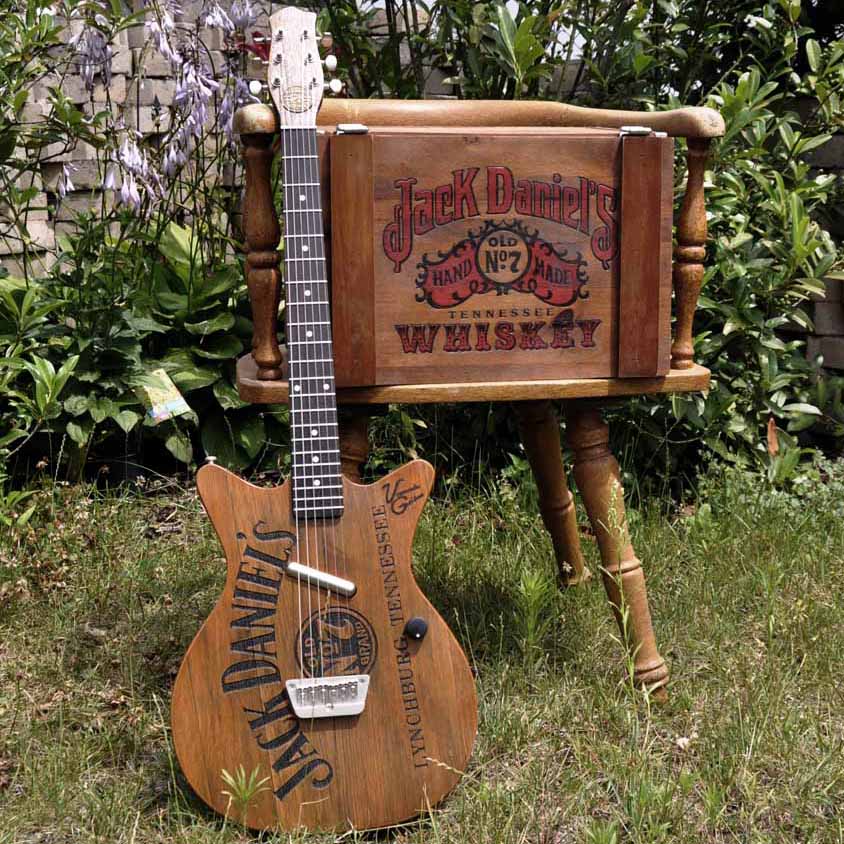 Laut Duden nennt man eine aus gleichen Ziffern bestehende Zahl eine Schnapszahl. Drum hab ich meine vierundvierzigste Gitarre auch wieder mal dem Schnaps gewidmet. Und warum nochmal Jack Daniels? Weil es DER Whiskey des Rock’n’Roll schlechthin ist und diese Jungs aus Tennessee außerdem die mit Abstand meisten Merchandise Artikel am Markt haben, aus denen man gut Gitarren bauen kann. Bei meiner „Jack on Ice“ vom letzten Jahr hatte ich in erster Linie ein JD Yenga Spiel zur Verfügung.