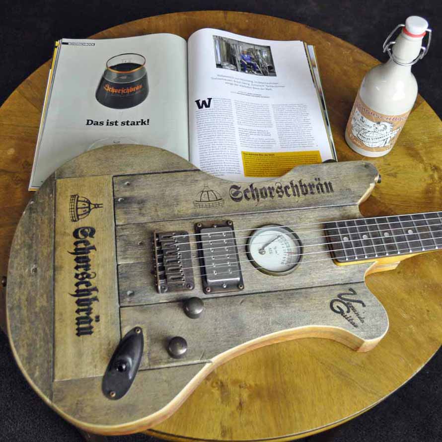 Mit meiner Schorschbräu Gitarre möchte ich vor allem an die schönen Jahre erinnern, als es auf der Gunzenhäuser Kirchweih neben dem tratitionellen Bierzelt auch noch das „Schorschzelt“ gab – hier wurde statt der üblichen Blechmusik ordentlich Tinte auf den Füller gegeben: Erstklassige Rockbands haben hier neben dem hervorragenden Bier für perfekte Unterhaltung gesorgt!