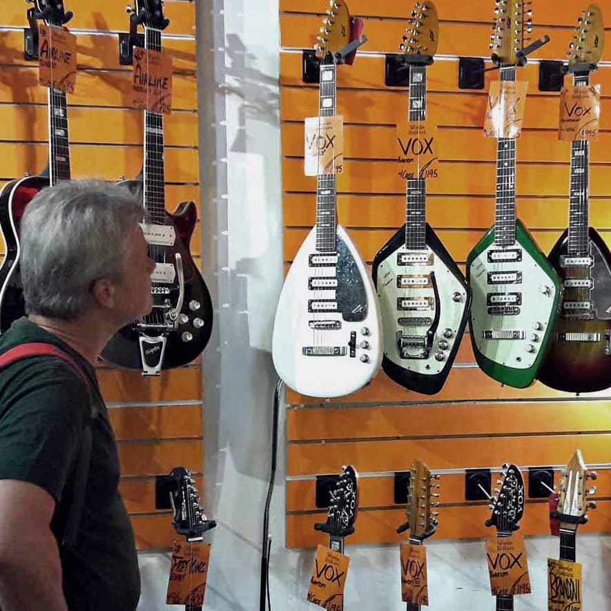Auf den drei letzten Fotos der Galerie sieht man die „London Rage“ mit drei echten Londoner native Guitars und mich während meines Besuches der legendären Denmarkstreet und VOX-Gitarren bei „Wunjo-Guitars“.