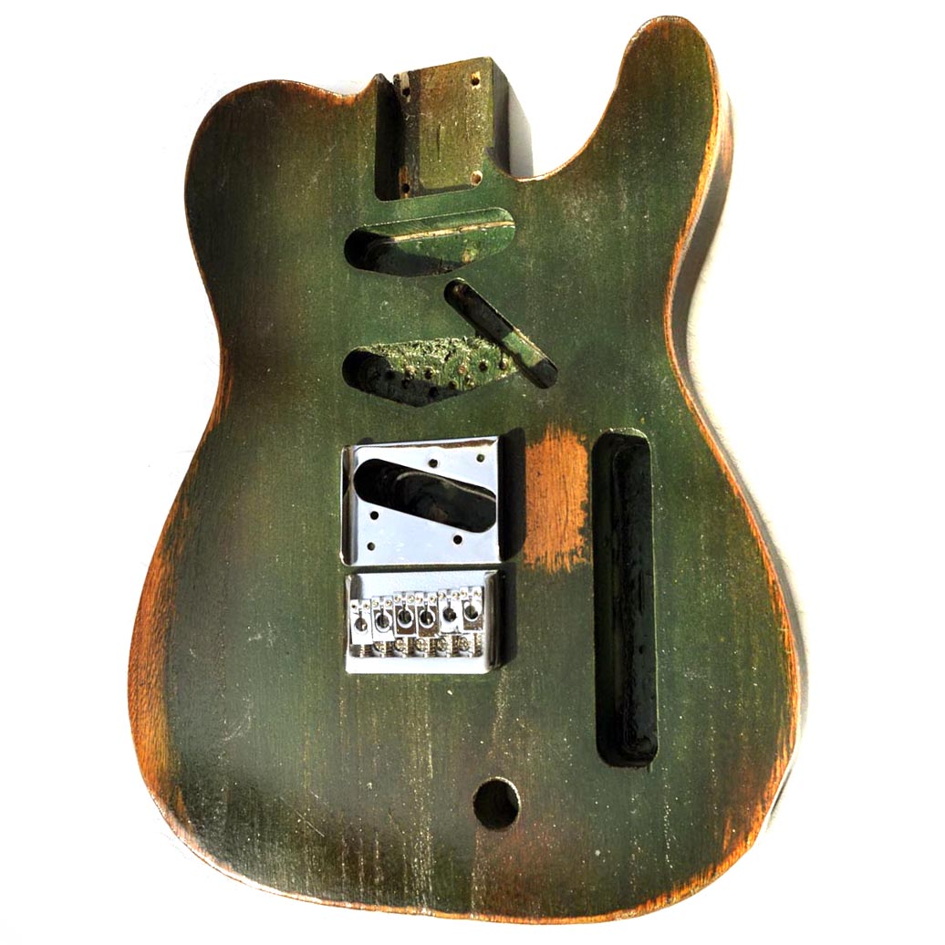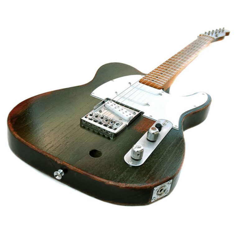 Der Korpus meiner „Rossi“ aus leichter Sumpfesche und der Hals aus kanadischem Ahorn stammen aus dem regulärem Teilehandel. Alles andere sind Dinge, die in meinen vielen Kisten im Keller geschlummert haben. Die Gitarre sollte nie eine möglichst detailgetreue Kopie werden. Eher ein Hommage an den großartigen Musiker! Den Halspickup hab ich beispielsweise aus einem Seymour Duncan „Red Devil“ Billy Gibbons Signature gebastelt. Er wurde dazu seiner „Ohren“ beschnitten und dann auf eine Tele-Baseplate geklebt. Der Mittel-PU ist ein alter vergossener „Fenix“ und der am Hals ebenfalls ein Seymour Duncan Vintage Single-Coil. Die Brückenkonstruktion und den ganzen Rest dürften die zahlreichen Fotos deutlich zeigen. Alles in allem eine absolut tolle und sehr leichte Tele, die rundum Spass macht und zumindest bei mir jede Menge Emotionen auslöst! Und den Anfang von „Down Down“ mit Kapo und offener Stimmung hab ich mir jetzt endlich auch mal einigermaßen draufgeschafft…
