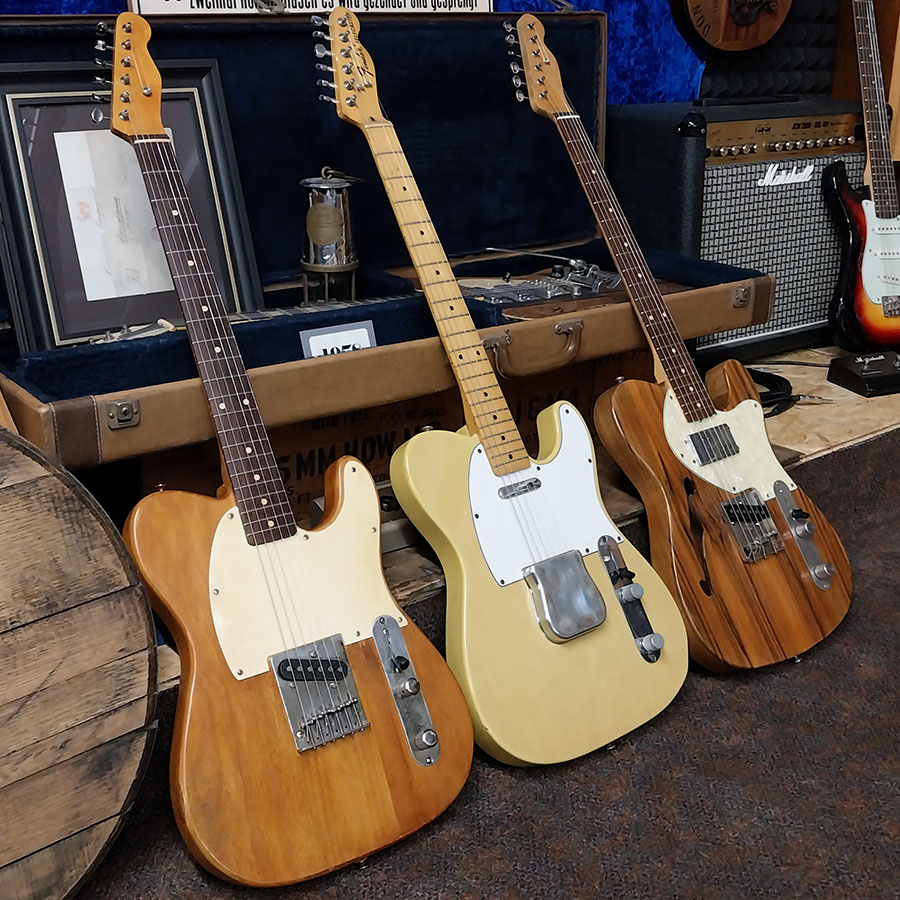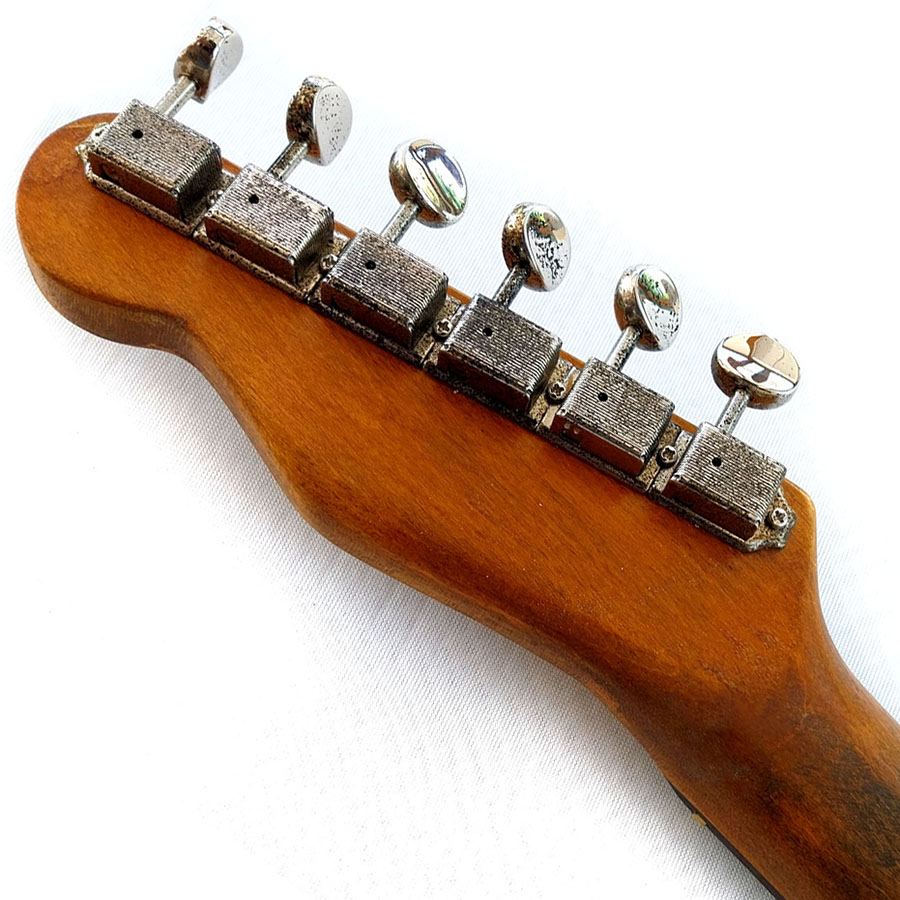 Schon im März 2020 hab ich die Veranda Ricky, eine Hommage an die Hauptgitarre des 2016 verstorbenen Status Quo Gitarristen Rick Parfitt gebaut. Sie ist jetzt schon seit drei Jahren im Besitz des wohl größten Quo-Fans Deutschlands (der hier verständlicherweise nicht namentlich genannt wird). So bin ich irgendwann auf die Idee gekommen, mir als „Ersatz“ eine Art Replik der 1957er Fender Esquire des Herrn Parfitt, die er fast immer im Song „Little Lady“ auf der Bühne benutzte, nachzubauen. Sie weist sämtliche markanten Features des Originals auf: Natur-Look, Palisander Griffbrett, Brücke mit sechs Einzelreitern, Strings-Through-Body und keinen Halspickup! Das Ergebnis ist eine schnörkellose Rockmaschine in cooler Relic-Optik! Ich bin begeistert!