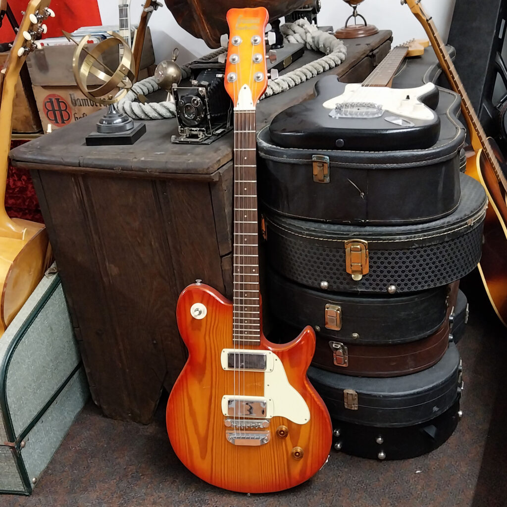 Interessantes Design von Framus! Der originale Drehschalter wurde durch einen wesentlich praktikableren Toggle-Switch ersetzt und liegt der Gitarre bei. Guter Zustand und hervorragender Sound und Bespielbarkeit!