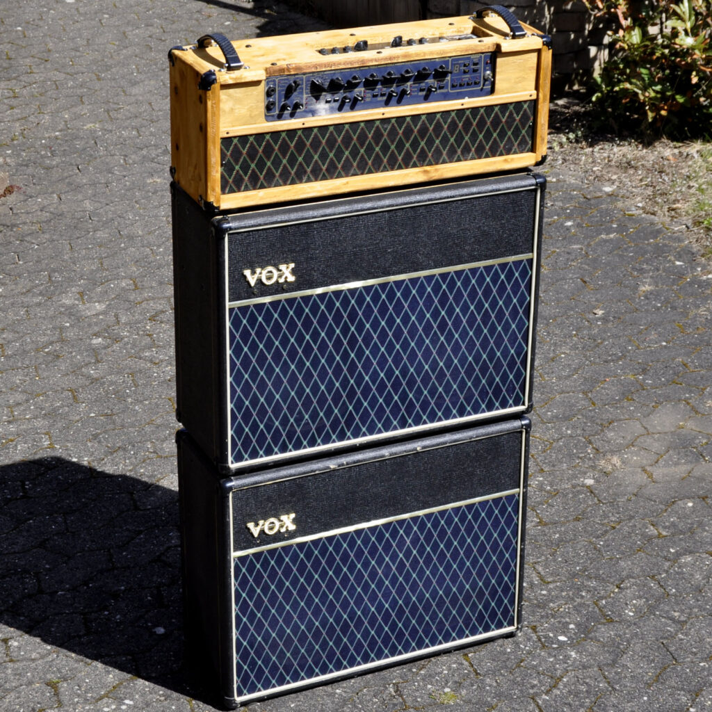 Es waren mal zwei VOX AD120VT Combos. Einer davon ist abgeraucht. Da hab ich beschlossen, den anderen als Topteil in ein neues Holzgehäuse zu bauen und die Combo-Gehäuse als 2 x 12″ Boxen zu verwenden. Das ist die Wucht! Also: 2 x 60 Watt Halbröhrenpower, 16 Modelling-Amps, 4 umfangreiche Effektsektionen über das komfortable VOX Floorboar (ein zweites gibt’s gratis dazu!) steuerbar! Ein Wahnsinns-Stack zum Wahnsinnspreis! Nur an Abholer!!