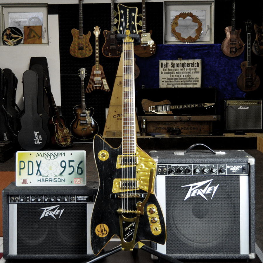 Der hat sie dann nach jahrelangem Dornröschenschlaf im heimischen Keller 2003 für die Aufnahmen zu „Mescalero“ wieder wachgeküsst und anschließend auch auf der Bühne gespielt. Viele Gitarrenfans einschließlich mir waren von diesem krassen Korpusdesign geflasht! Gretsch hat daraufhin die „Billy (Gibbons) Bo (Diddley)“ aufgelegt.