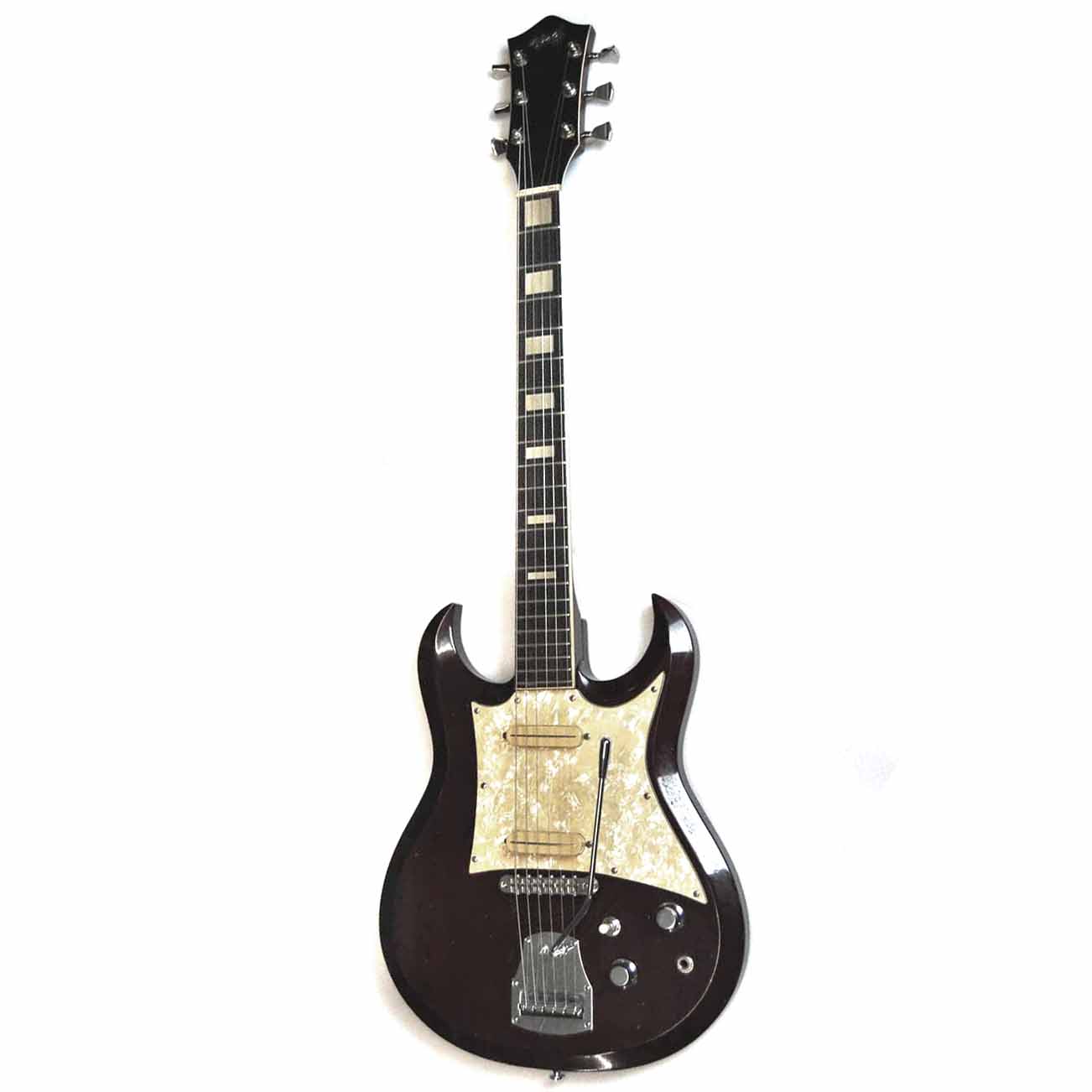 Hopf SG Studio, Hopf Saturn 63, Hopf Allround, Hopf TellstarDie Geschichte der Instrumentenbauerfamilie Hopf aus dem Vogtland hat vor exakt 350 Jahren begonnen. 1669 wird erstmalig der Instrumentenbauer Caspar Hopf aus Klingenthal urkundlich erwähnt. Die genauere Firmengeschichte bis zum heutigen Tag kann man auf der Website der Firma Hopf nachlesen. Bekannte Modelle aus den 1960er Jahren waren auch die Saturn, Allround und Telstar (siehe Foto – die hatte ich alle schon mal  „in stock“). Das vorliegende Modell „Studio“ ist eine Art Kreuzung aus Gibson SG und Burns Bison. Laut einem interessanten Artikel in „Gitarre & Bass“ von Josef Urbanek aus dem Jahr 2005, hat Dieter Hopf, der noch heute hervorragende Konzertgitarren baut, auch schon vor 50 Jahren dieses Modell mit entworfen. Die Basis der Gitarre (im oberen Foto links) ist als durchweg hochwertig zu bezeichnen: Mahagonihals und -body in feinster cherry Nitrolackierung und ein Palisandergriffbrett mit Binding und Blockinlays.