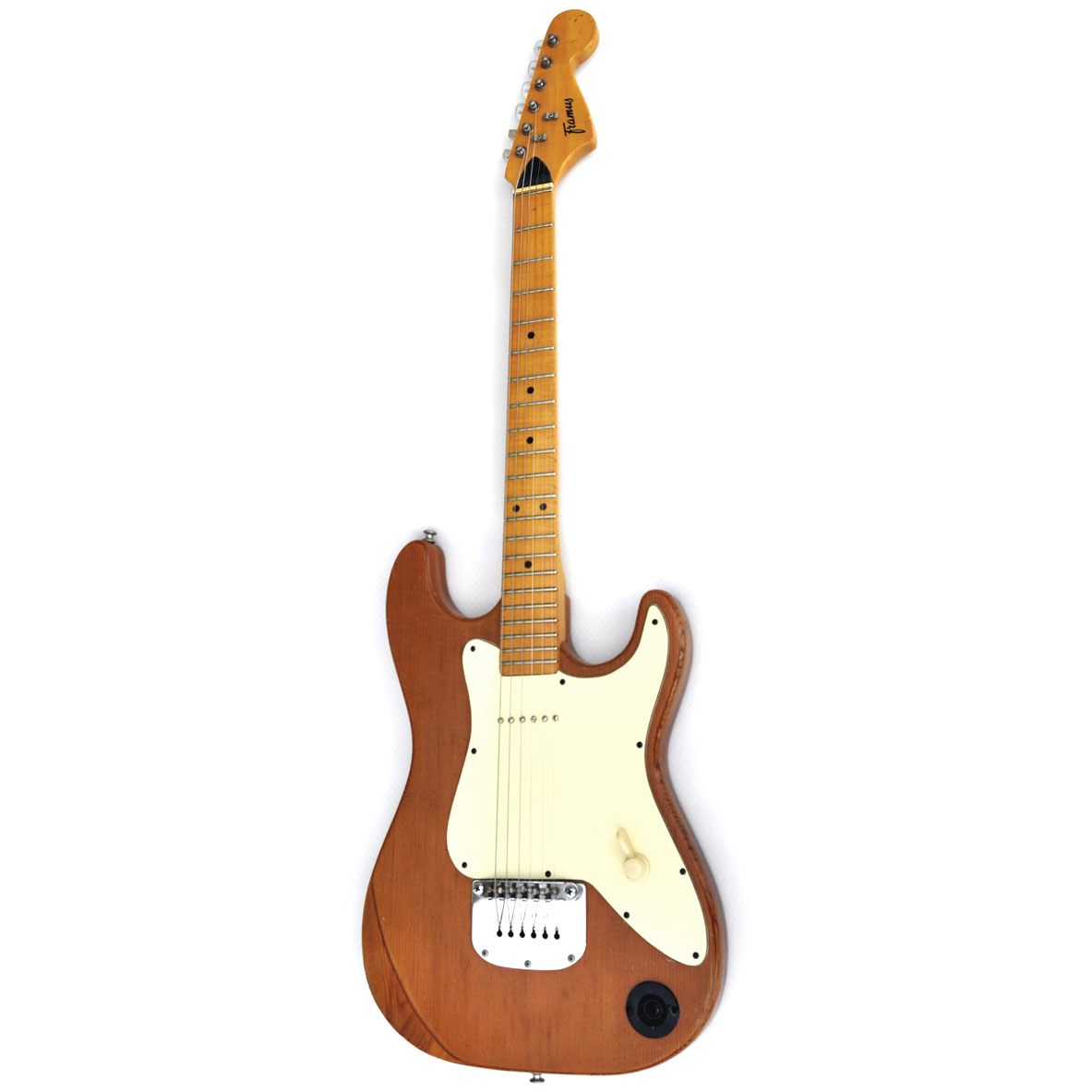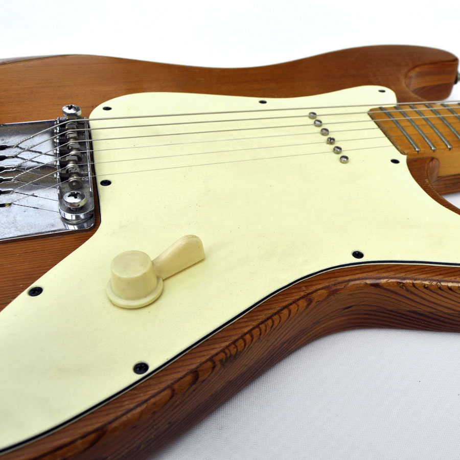 Der Sohn eines ehemaligen Framusmitarbeiters hat mich kürzlich kontaktiert und erzählt, dass er eine Art Prototyp aus Anfang der 1970er Jahre anzubieten hätte. Der Senior hat sie kurzerhand „mitgehen“ lassen, nachdem sie nach der Framus-Insolvenz immer noch in der Entwicklungsabteilung herumstand, er um sein letztes Gehalt fürchtete und zudem noch bekannt wurde, dass das Werksgebäude weggesprengt werden sollte. Sie scheint als eine Art Antwort auf die japanische Konkurrenz gedacht gewesen zu sein, da der Pickup ganz minimalistisch ins Pickguard eingearbeitet ist und auch nur ein Regler für die Lautstärke vorhanden ist. Kostenersparnis war wohl die Maxime zu der Zeit! Happy First of April!“