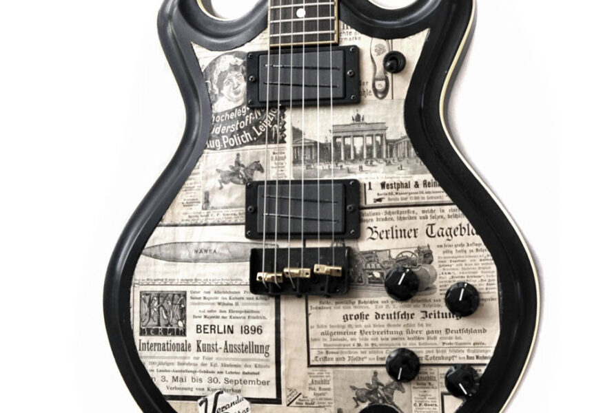 Hier nun die fünfte und letzte Gitarre aus dieser Serie mit Zeitungscollagen aus den Jahren von 1880 bis 1896. Was es genauer damit auf sich hat, kann man gut im Artikel