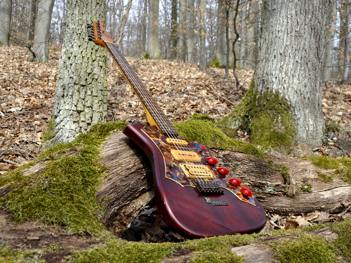 Klanglich finde ich vor allem die Zwischenstellung der beiden Single Coils interessant und optisch das Zusammenspiel mit dem fränkischen Eichenwald Mitte März!